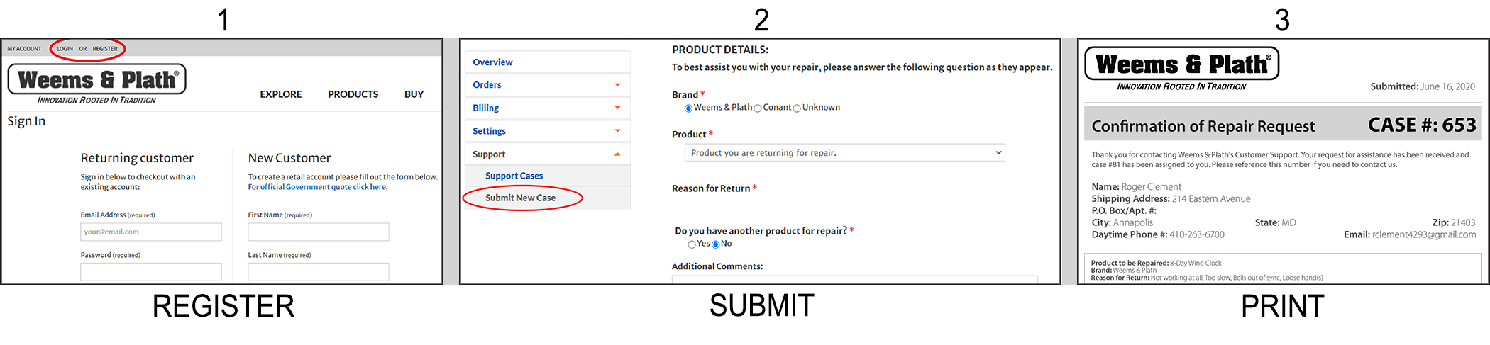 - Using our online Repair Request Form to immediately create a support case in our system (this form can only be found within the My Account section)